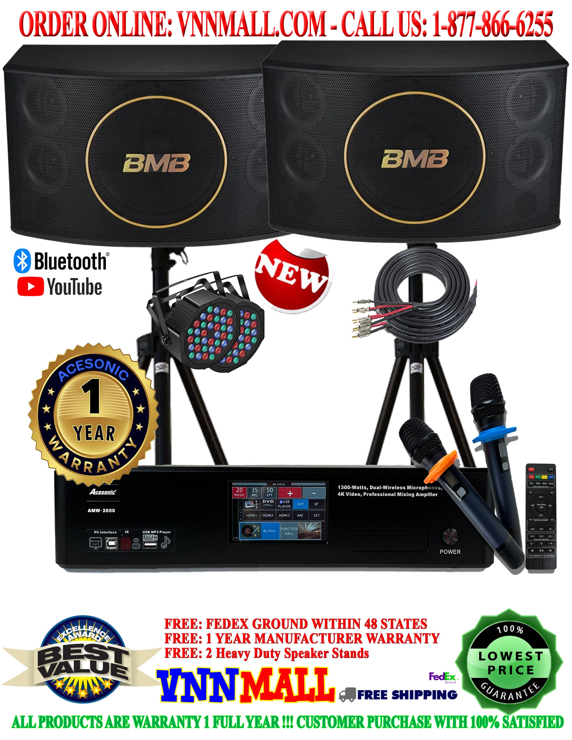2. Acesonic AMW-2650 2600W Karaoke Mixing Amplifier with Built-in Bluetooth, 4K HD & Dual Wireless Microphones ($1500 ) ( Model 2025 )