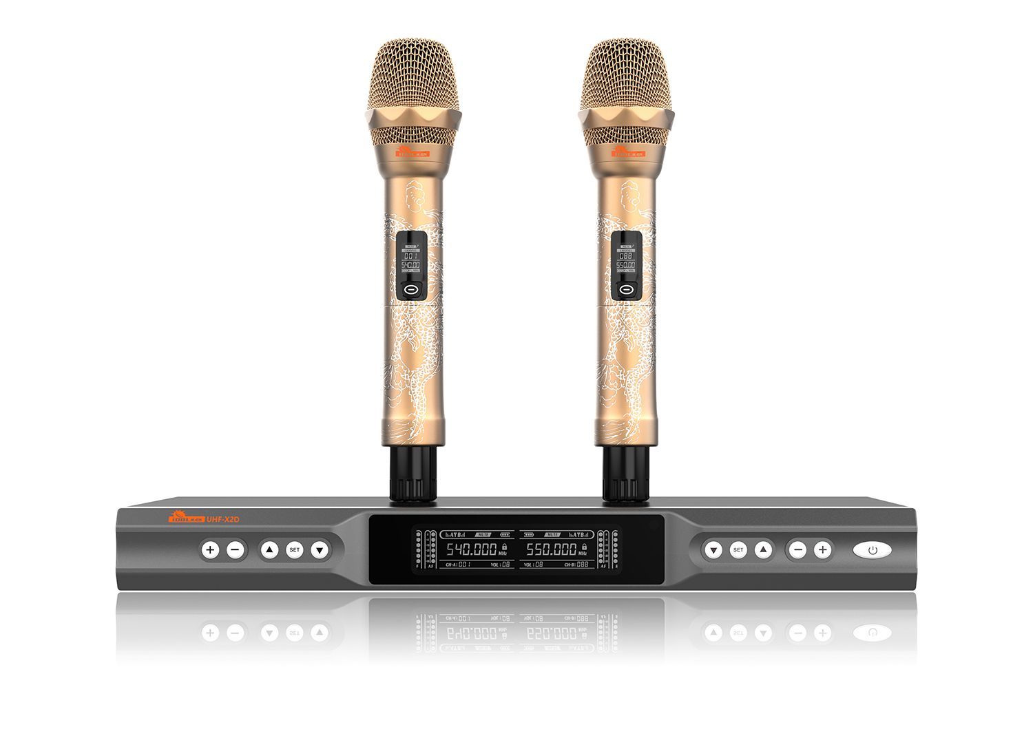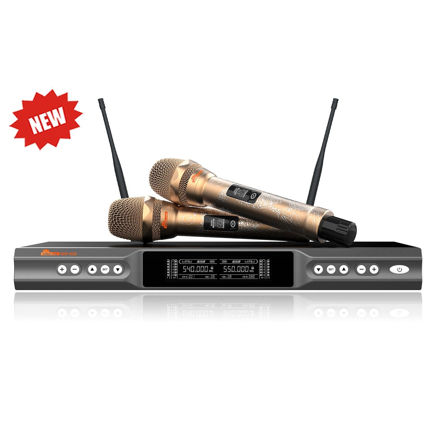 The UHF-X2D combines IDOLmain professional hallmark crystal-clear sound with the high end unique design. This is a very high quality and durable unit which was built for years of continuous, reliable use. Featuring advanced frequency technology operation for signal stabilized, the UHF-X2D also has an operating range of up to 300ft or more, twice as far as most premium wireless microphone systems. UHF-X2D also packed with anti-feedback and vocal-support to deliver crystal-clear and distortion-free sound quality.